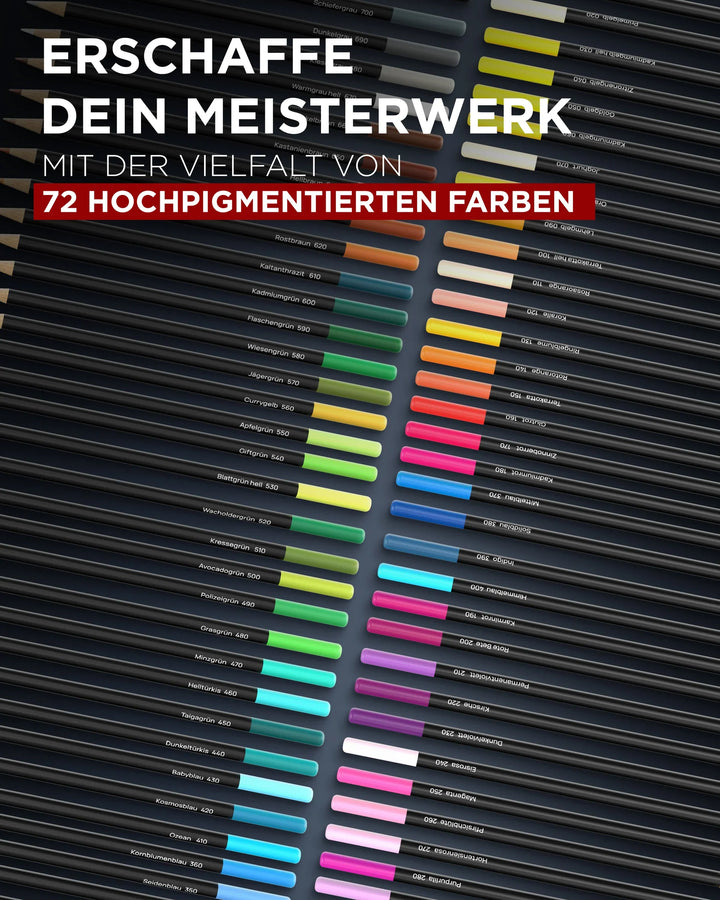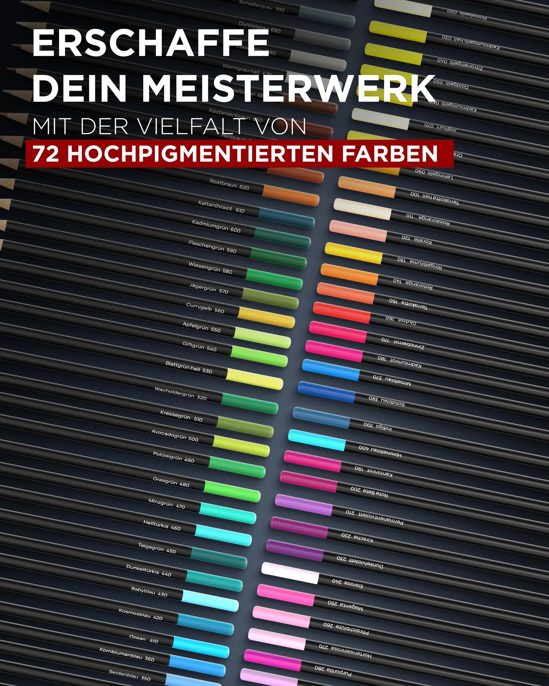 - PERFEKTE AUSWAHL – Dieses Buntstifte Set bietet Dir 72 sorgfältig ausgewählte Farben. Von zarten Pastelltönen über lebendige Primärfarben zu tiefgründigen Erdtönen. Perfekt für detaillierte Illustrationen, lebendige Kunstwerke oder kreative DIY-Projekte.