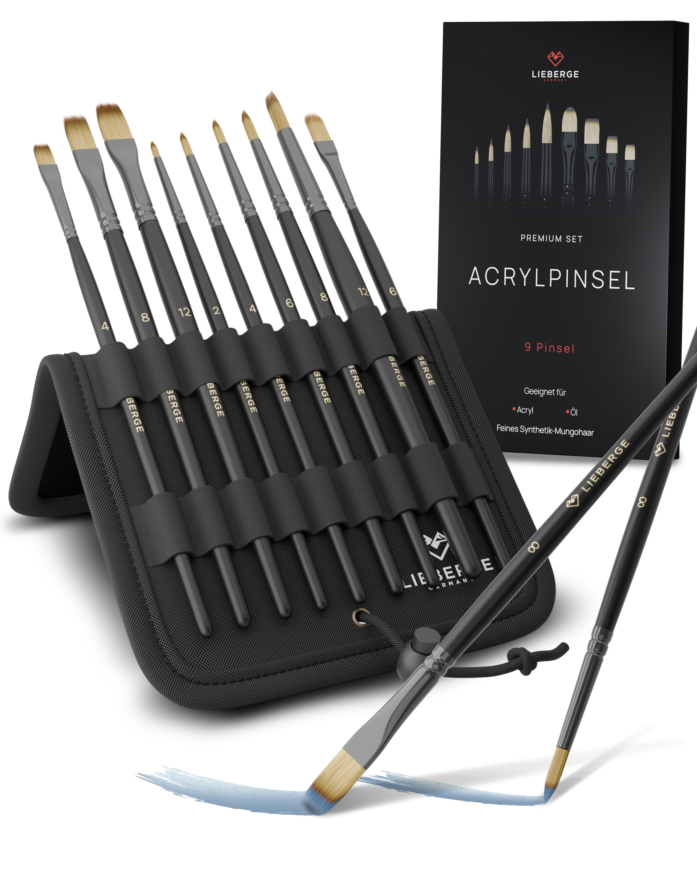 LIEBERGE PREMIUM SET Acrylpinsel (9 Pinsel) im Aufstell-Etui