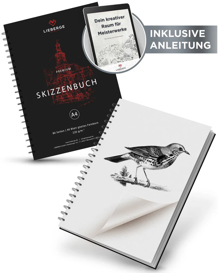 NEU: LIEBERGE Skizzenbuch A4 spiralgebunden (220g, 40 Blatt)