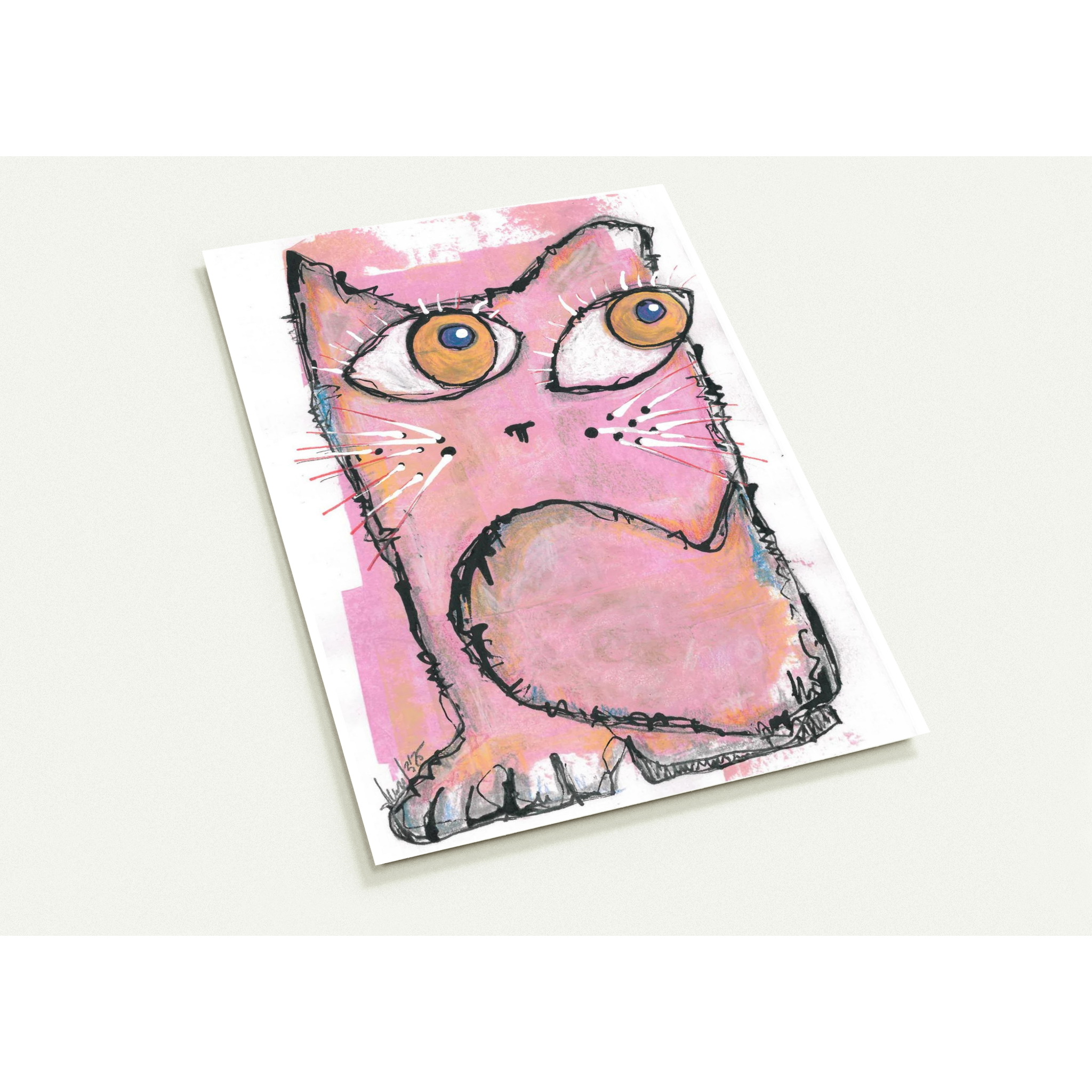 "Pink Cat" Postkarte – Kunst, die miaut! | 10r-Pack