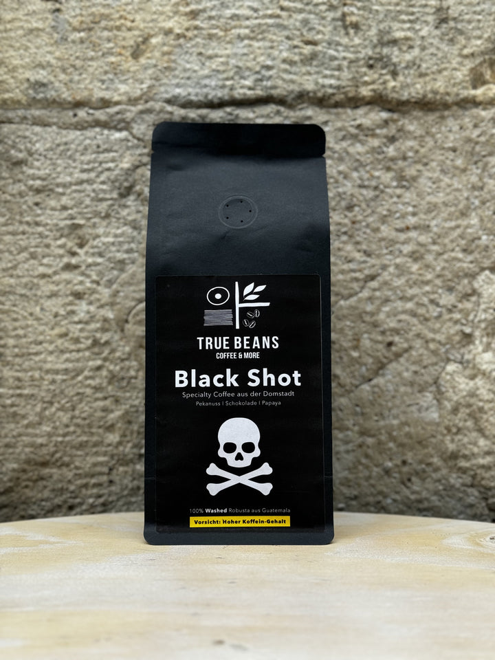 Mit dichter Crema, vollem Körper und einer intensiven Aromatik liefert Black Shot alles, was ein echter Wachmacher braucht. Dank seines hohen natürlichen Koffeingehalts von rund 170–180 mg pro Portion (8 g) bringt er nicht nur Geschmack, sondern auch echte Energie in die Tasse. Kraftvoll, direkt und ohne Schnörkel – ein Single Origin Robusta, der keine Fragen offenlässt.