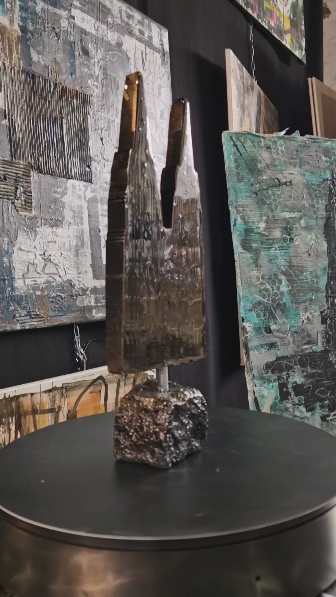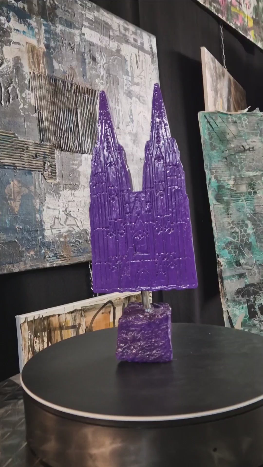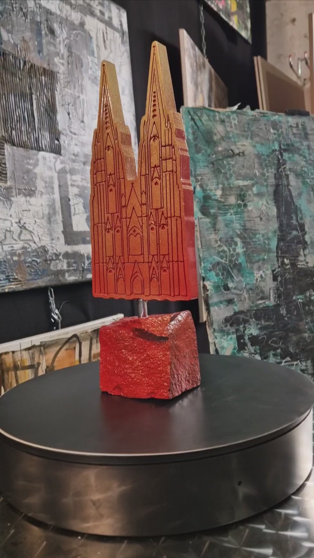 Acryl-Figur Kölner Dom in bunten Farben und schwarz-weiss - Applikationen in Fliesstechnik.